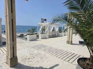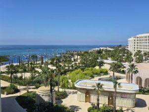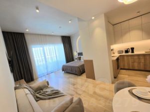 Апартамент класса люкс предлагает вид на море или на внутренний двор с бассейнами. Просторный балкон станет идеальным местом для утреннего кофе с панорамой морской глади или вечернего отдыха под звуки прибоя, позволяя в полной мере насладиться дизайном, комфортом и окружающей красотой.