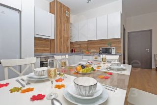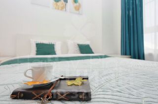 Просторная квартира состоит из трех уютных спален с дорогими ортопедическими матрасами и большой гостиной, объединенной с современной кухней. Акцентный свет, каменная столешница, гранитная мойка, индукционная плита, духовка и посудомоечная машина подчеркивают безупречный вкус и внимание к деталям. Два санузла обеспечивают удобство для жильцов и гостей. Особой изюминкой является огромный открытый балкон площадью сорок квадратных метров, оборудованный мебелью из искусственного ротанга и теневой навесом, — идеальное место для завтраков, обедов и теплых вечеров в большой компании.