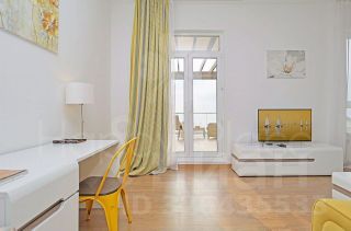 Предлагается к продаже большая и светлая квартира с прямым видом на море, расположенная в корпусе на берегу в курортном районе Сириуса. Находясь на пятом этаже, она предлагает своим владельцам захватывающую панораму бескрайней морской глади и легкий доступ к золотым пескам пляжа, который виден прямо с террасы.