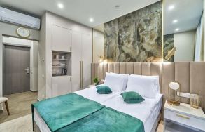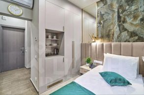 Стильная квартира-студия с современным евро ремонтом в монолитном доме 2022 года постройки. Просторная комната оборудована удобной кроватью и вместительными шкафами. Из окон открывается вид на тихую улицу, а балкон предоставляет дополнительное пространство для отдыха.