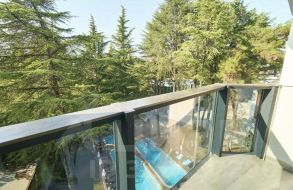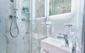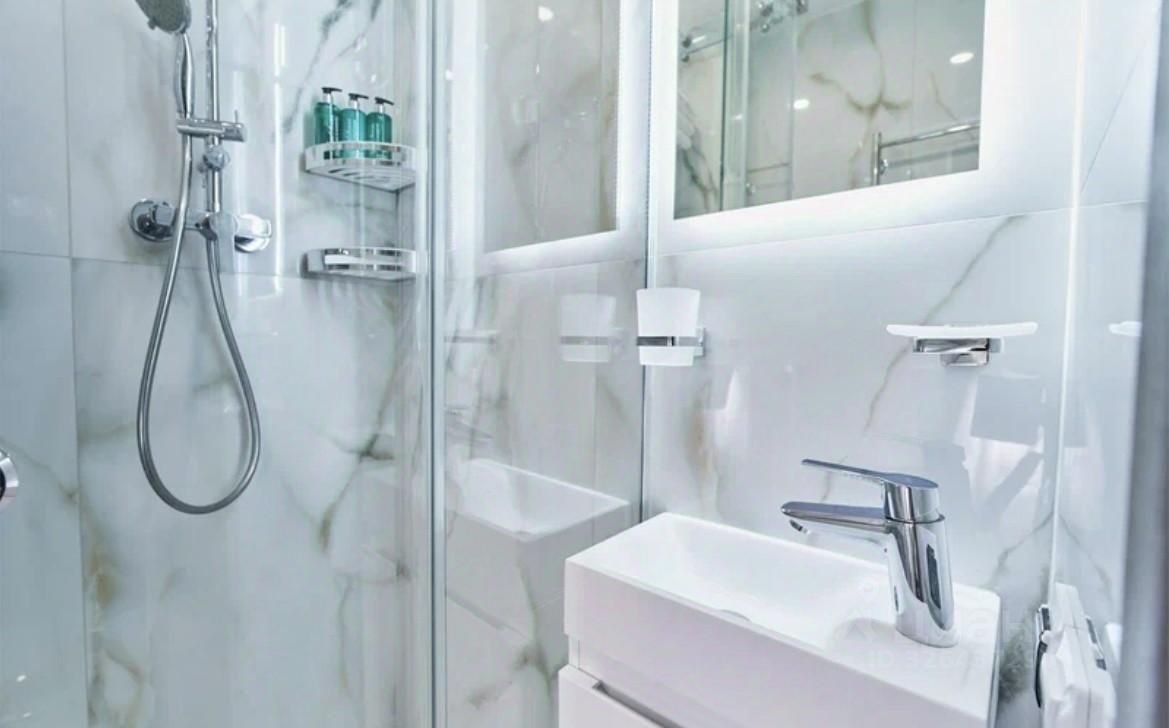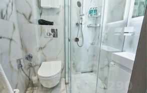 Совмещенный санузел выполнен в светлых тонах с качественной сантехникой и душевой кабиной. В квартире установлен кондиционер и холодильник. Дом оснащен консьержем, грузовым лифтом и парковкой за шлагбаумом во дворе. Закрытая территория обеспечивает безопасность и комфорт проживания.