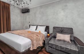 Квартира с изолированной спальней, просторной гостиной, кухней и балконом способна вместить до семи гостей, что делает ее идеальным выбором для большой семьи или компании друзей. Она оснащена двуспальной кроватью, раскладными диванами, двумя телевизорами, посудомоечной машиной и тремя кондиционерами, обеспечивая безупречный комфорт для всех жильцов.