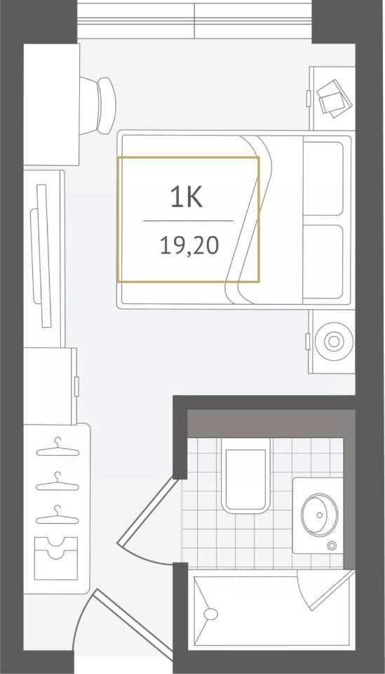 Просторные 1-комн. апартаменты-студия с отделкой в Гостиничный комплекс "Нескучный сад" на 2 этаже. Общая площадь: 19.2 кв.м., площадь гостиной 15.2 кв.м., из которых 5 кв.м. выделено под кухонную зону. Все окна выходят на одну сторону. В апартаментах один совмещенный санузел. Высота потолков 2.7 м.