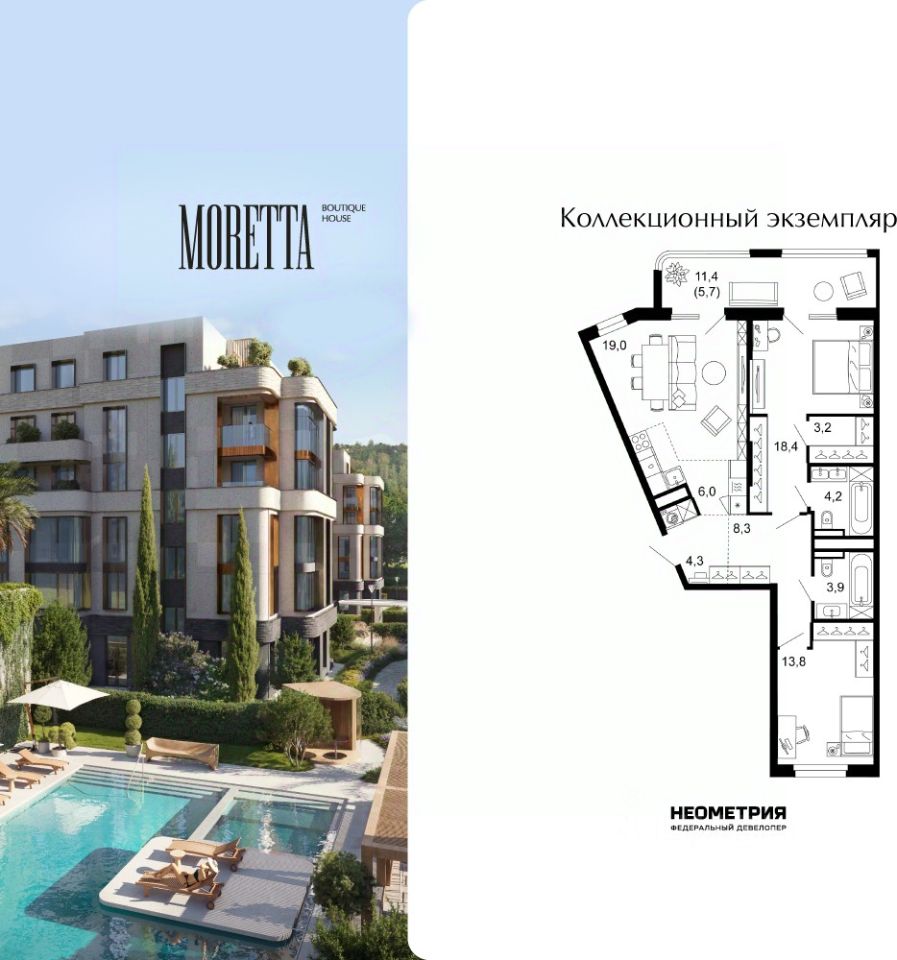 MORETTA— первый и единственный премиальный жилой комплекс Сочи бутикового формата. Коллекционный дом воплощает идею тайного места роскошной безмятежности, где индивидуальный подход ощущается в каждой детали: камерной локации и подчеркнутой приватности, лимитированном числе резиденций, архитектуре и уникальном окружении, клубных привилегиях и культуре сервиса.