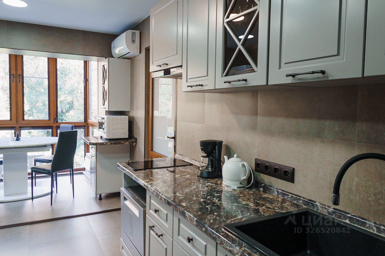 Хоста,2-комнатная квартира ул.50 лет СССР 16 общей площадью 47 квадратных метра,санузел совмещеный,есть лоджия,5-этаж 5-этажного дома,в квартире выполнен дизайнерский ремонт,рядом магазины,школа,детский сад,до моря 15 минут пешком.