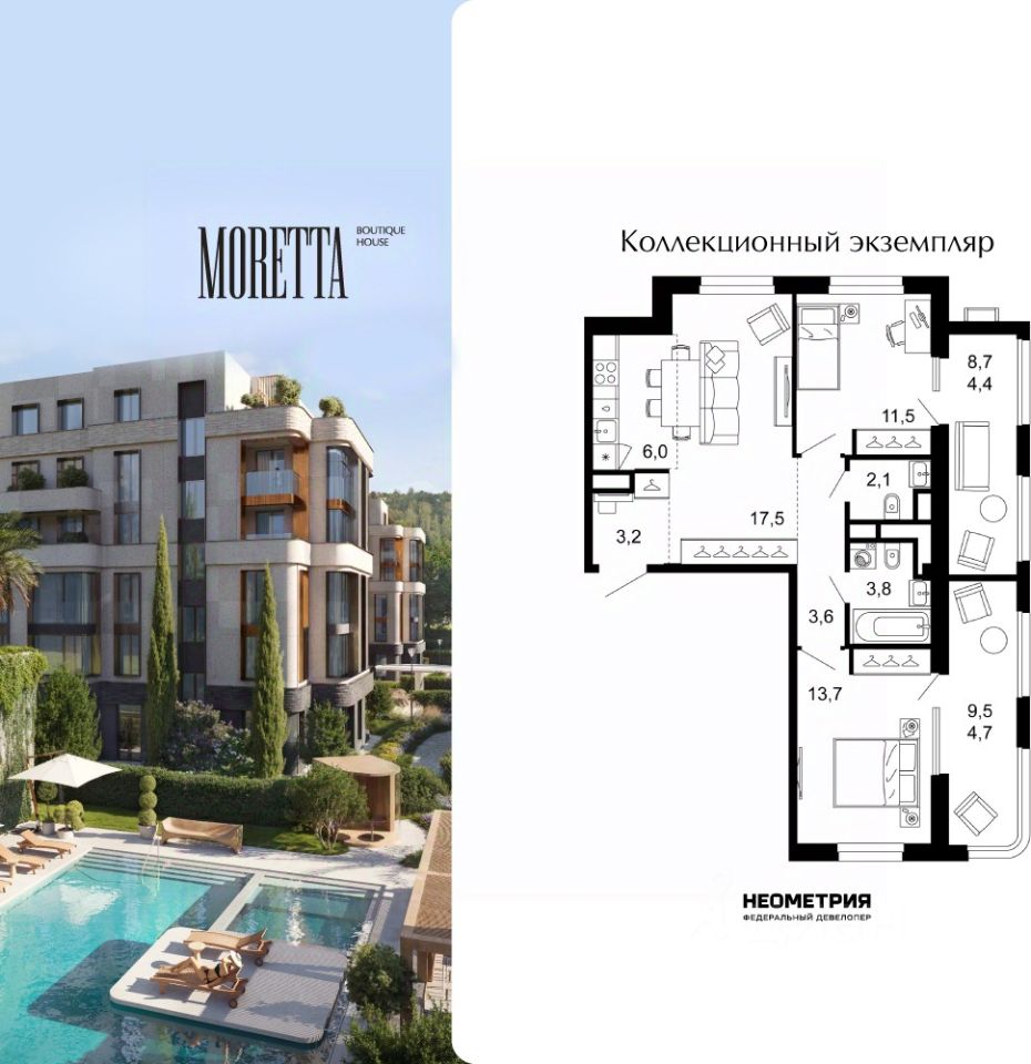 MORETTA— первый и единственный премиальный жилой комплекс Сочи бутикового формата. Коллекционный дом воплощает идею тайного места роскошной безмятежности, где индивидуальный подход ощущается в каждой детали: камерной локации и подчеркнутой приватности, лимитированном числе резиденций, архитектуре и уникальном окружении, клубных привилегиях и культуре сервиса.