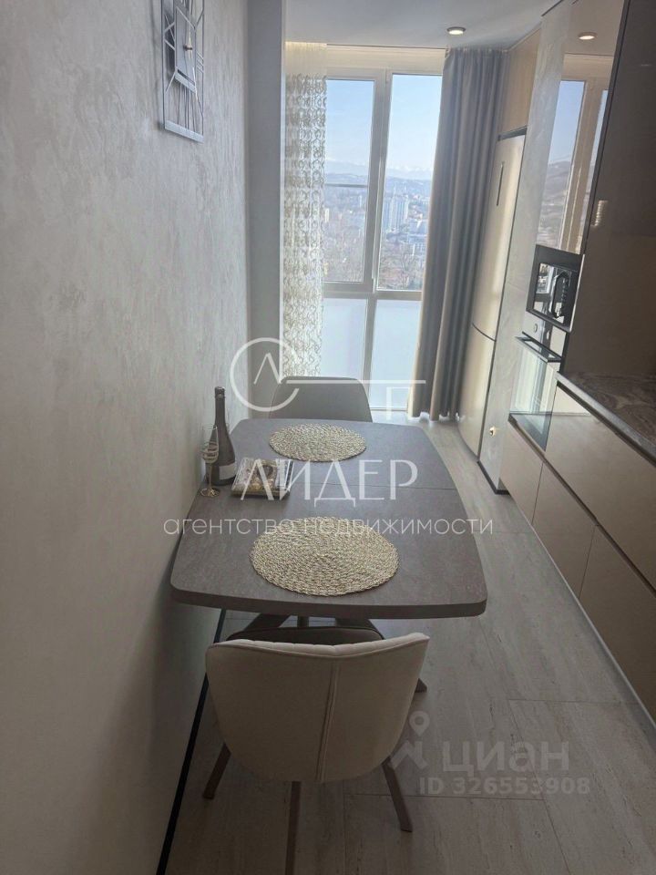 Продается уютная 2-комнатная квартира в Сочи, в микрорайоне Новый Сочи. Общая площадь квартиры составляет 60 кв. м, кухня — 15 кв. м. Квартира расположена на 12 этаже 12-этажного дома. Из окон открывается вид как на море, так и на горы, шикарный вид на весь центр города Сочи.
