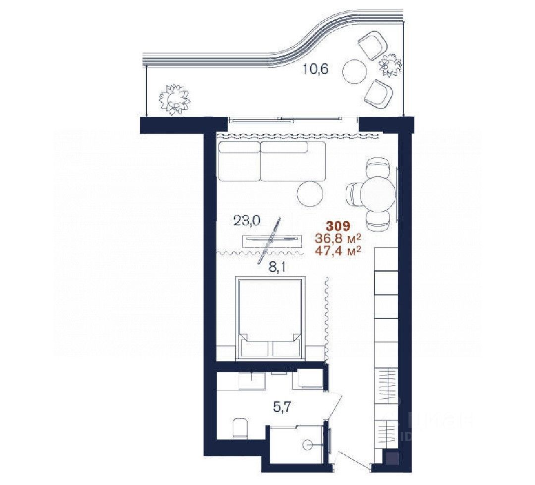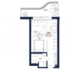 В данном апартаменте уже сделан дизайнерский, дорогой ремонт, фото предоставила и планировку. Евро двухкомнатная квартира прекрасно спланирована: вместительный коридор с встроенным шкафом, совмещенный санузел, отдельная спальня, кухня-гостинная с балконом. Мебель, техника уже входит в стоимость, всё уже продумано отельным оператором и дизайнером.