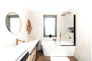 Совмещенный, выполнен в современном стиле с использованием качественной европейской сантехники.