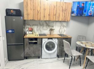 Полноценный холодильник, микроволновая печь, стиральная машина с сушкой , вещи всегда чистые и сухие, варочная панель , вытяжка . Есть абсолютно все для комфортного проживания.