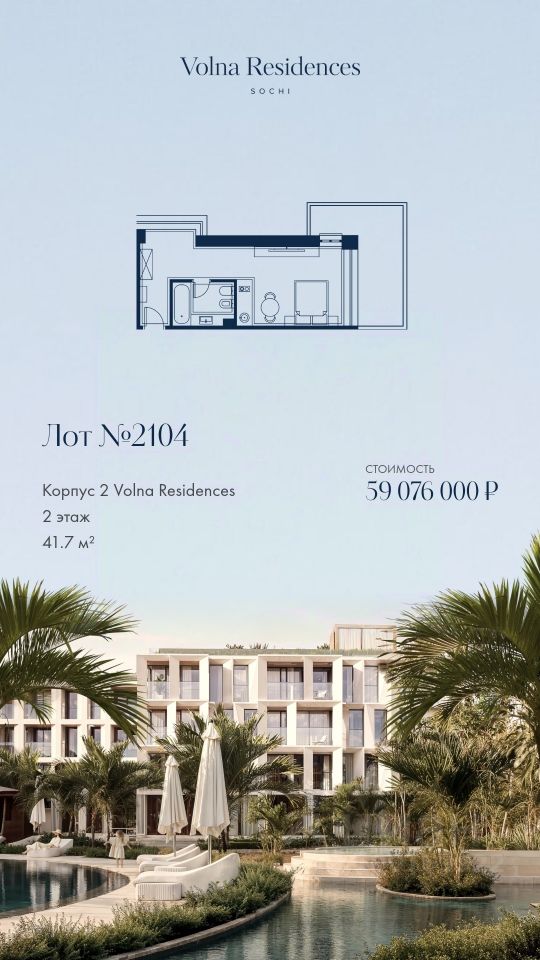 Продаётся 1-комнатная квартира в строящемся доме (Дом 2), срок сдачи: II-кв. 2028, общей площадью 41.7 кв.м., на 4 этаже. Volna Residence - это комплекс для жизни на территории комплекса Volna, объединённый с отелем общей концепцией и инфраструктурой. 3 малоэтажных корпуса на 520 номеров расположены на первой береговой линии и имеют собственный бассейн.