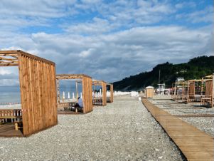 Частный пляж (шезлонги, зонтики, кафе, душ, туалет, раздевалка)!