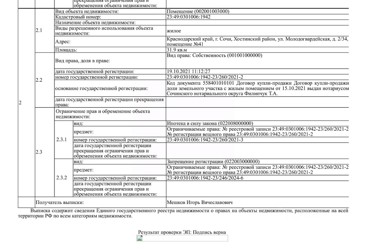 Д-к: Зудина Г.В. Квартира, площадь 31,9 кв.м., кадастровый номер 23:49:0301006:1942. Адрес: Краснодарский край, г. Сочи, ул. Молодогвардейская, д. 2/34, пом. 41. Начальная цена 5 584 056,30 руб., задаток 5 585 руб., шаг аукциона 55 841 руб., ув. 1768