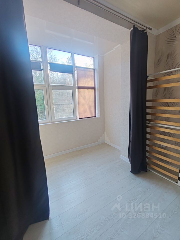 Огромные окна во всю стену с видом на зелень (а если присмотреться, то видно и море ). 22 кв. м.