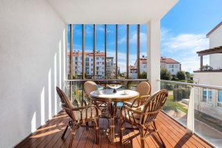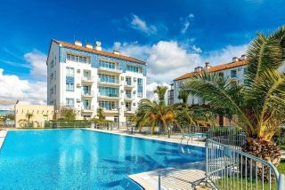 Планировка включает: гостиная с кухней, выделенные спальни, балкон с видом на море и прилегающую ухоженную территорию комплекса.