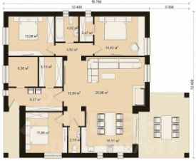 Просторная планировка включает в себя три изолированные спальни, современную кухню-гостиную, 2 санузла и гардеробную