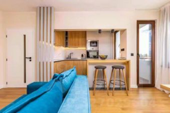 Площадь 55 м². Квартира очень светлая, с продуманной функциональной планировкой: отдельная кухня - гостиная, две изолированные спальни, вместительная гардеробная и удобный санузел. Большие окна наполняют пространство естественным светом в течение всего дня.
