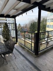 Изюминка данной квартиры терраса 46кв.м с шикарным видом на море и оборудованная всем необходимым для отдыха, где можно наслаждаться свежим воздухом, пить чай и наблюдать за прекрасным видом моря. Совмещенный санузел выполнен в светлых тонах и оснащен всем необходимым. Парковка находится за шлагбаумом во дворе, что обеспечивает безопасность автомобиля. Есть возможность сделать отдельны вход с парковки.
