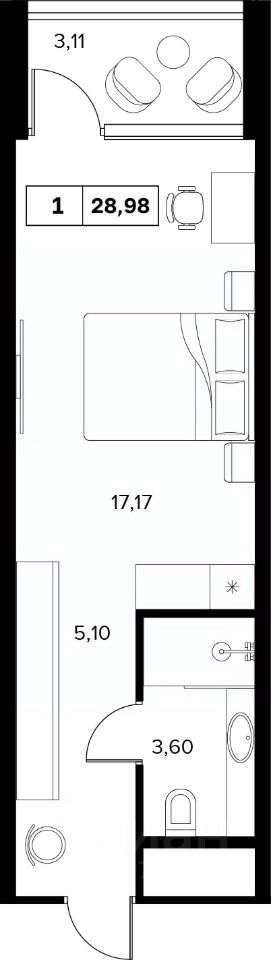 В продаже номер площадью 28.98 м² на 6 этаже в премиальном экокомплексе Белые Ночи.