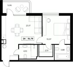 В продаже номер площадью 51.79 м² на 3 этаже в премиальном экокомплексе Белые Ночи.