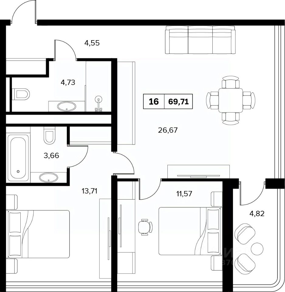 В продаже номер площадью 69.71 м² на 3 этаже в премиальном экокомплексе Белые Ночи.