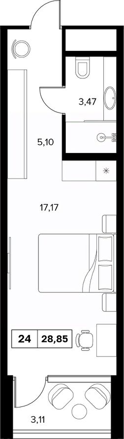 В продаже номер площадью 28.85 м² на 3 этаже в премиальном экокомплексе Белые Ночи.