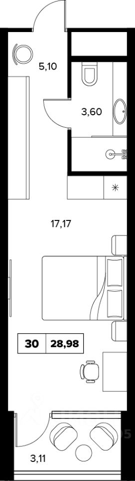 В продаже номер площадью 28.98 м² на 6 этаже в премиальном экокомплексе Белые Ночи.