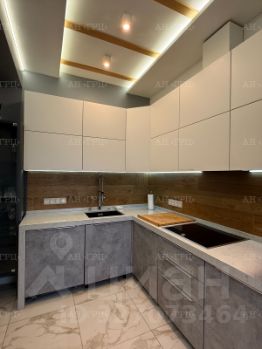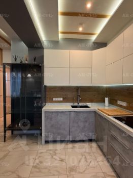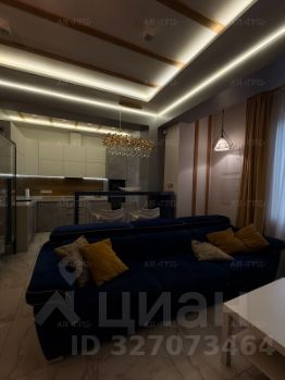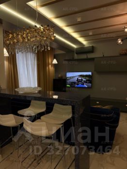 • Кухня-гостиная: Все двери и ящики укомплектованы доводчиками Blum. Столешница натуральный камень, большая сплошная рабочая поверхность. Каменная раковина. Установлена система очистки воды и измельчения бытовых отходов. Шкаф сервант для посуды (массив натурального дерева). Безусловной доминантой кухонно-гостиничной зоны: является барная стойка из искуственного камня с яркой дизайнерской люстрой. Диван- кровать с 2 спальным местом.