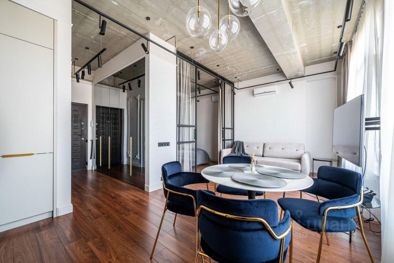Южная квартира с новым дизайнерским ремонтом, который совмещает в себе стиль лофт, дерево и изящную лепнину, а стеклянные панели придают легкость и воздушность пространству!