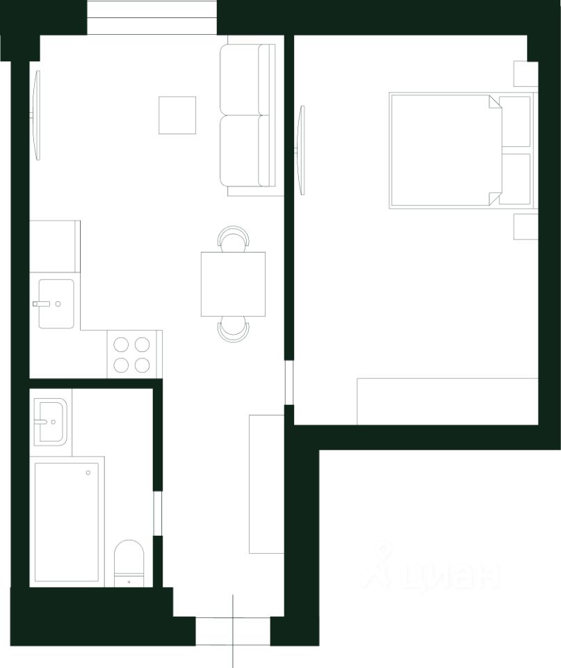 Продаются 1-комнатные апартаменты в сданном доме (Дом 33), срок сдачи: I-кв. 2024, общей площадью 34.2 кв.м., на 2 этаже.