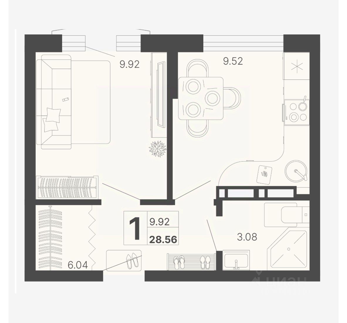 Общая площадь28,56 м²