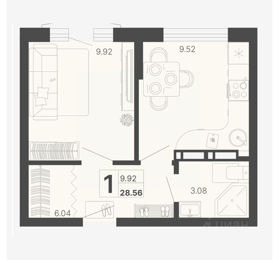 Общая площадь28,56 м²
