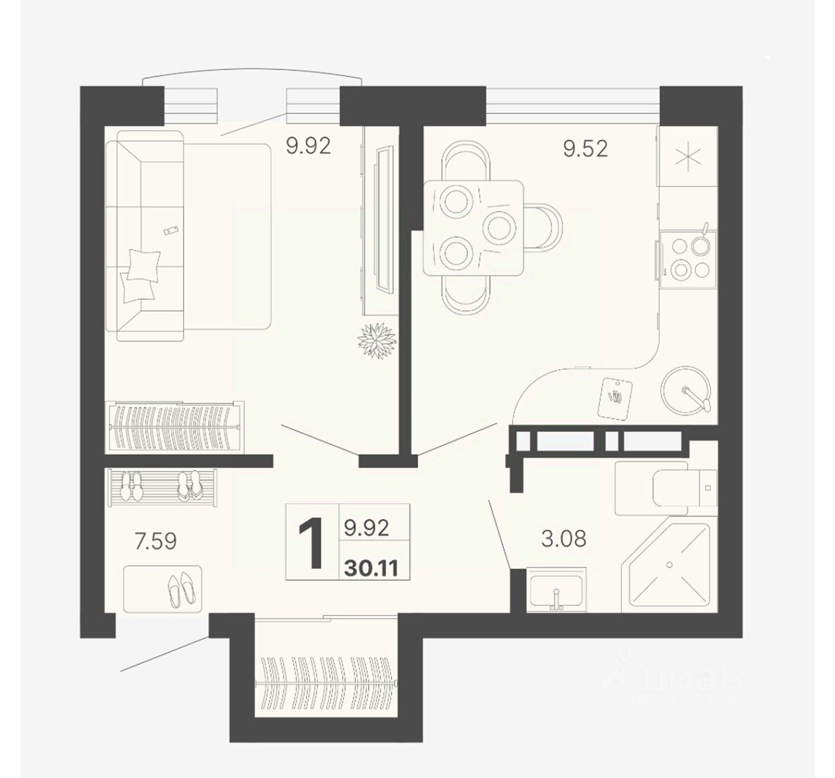 Общая площадь30,11 м²
