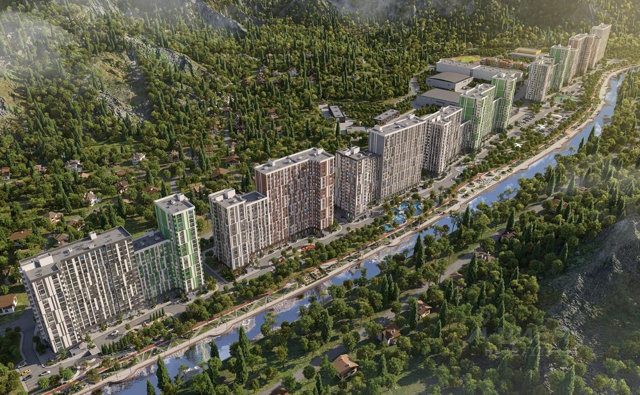 Жилой комплекс состоит из 7 домов переменной этажности от 11 до 20 этажей. В холлах и вестибюлях выполнена дизайнерская отделка, установлены скоростные лифты. На 1 этажах расположены зоны ожидания и колясочные. В проекте предложено множество планировочных решений: в наличии квартиры классического типа. Сдаются они с подчистовой отделкой, панорамными окнами и высотой потолков в 3м. Некоторые квартиры имеют вид на лесной массив и горы. На закрытой территории комплекса выполнен ландшафтный дизайн, установлены безопасные детские площадки для детей всех возрастов, места для отдыха, зоны барбекю с беседками, спортивные площадки, установлен открытый бассейн. На территории также оборудована своя набережная протяженностью в 1,2км. Для владельцев автомобилей предусмотрен отдельный многоуровневый паркинг. Жилой комплекс располагается в активно развивающемся Хостинском районе. В нескольких минутах ходьбы находятся поликлиники, школы, детские сады, кинотеатр, магазины и кафе. До центра Сочи можно добраться за 30 минут транспортом.
