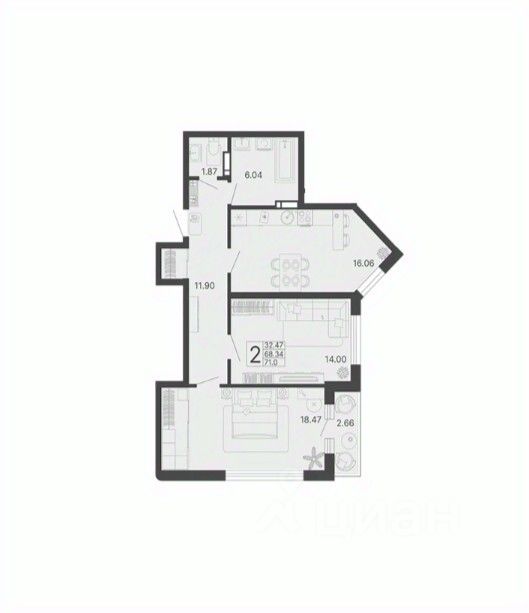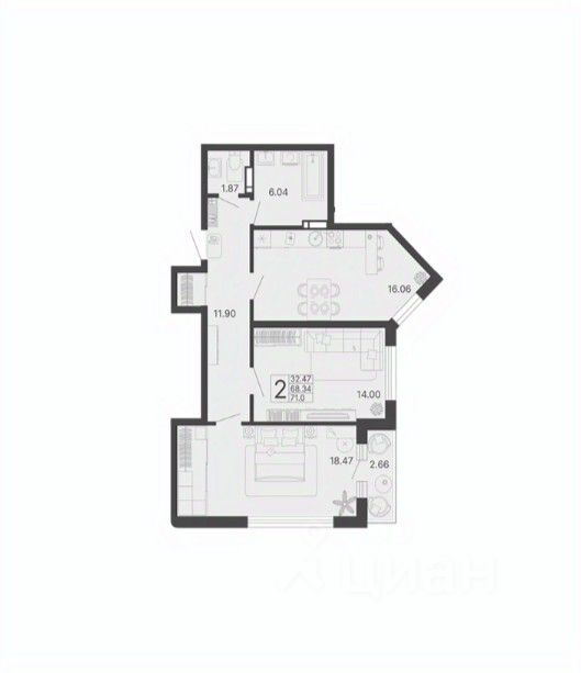 Общая площадь70,01 м²