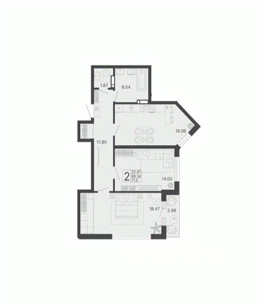 Продается 2-комн. квартира, 70,01 м²