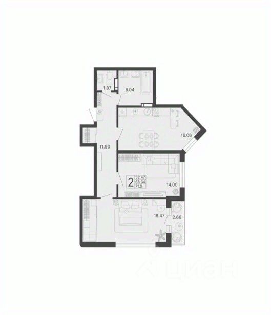 Площадь кухни16,1 м²