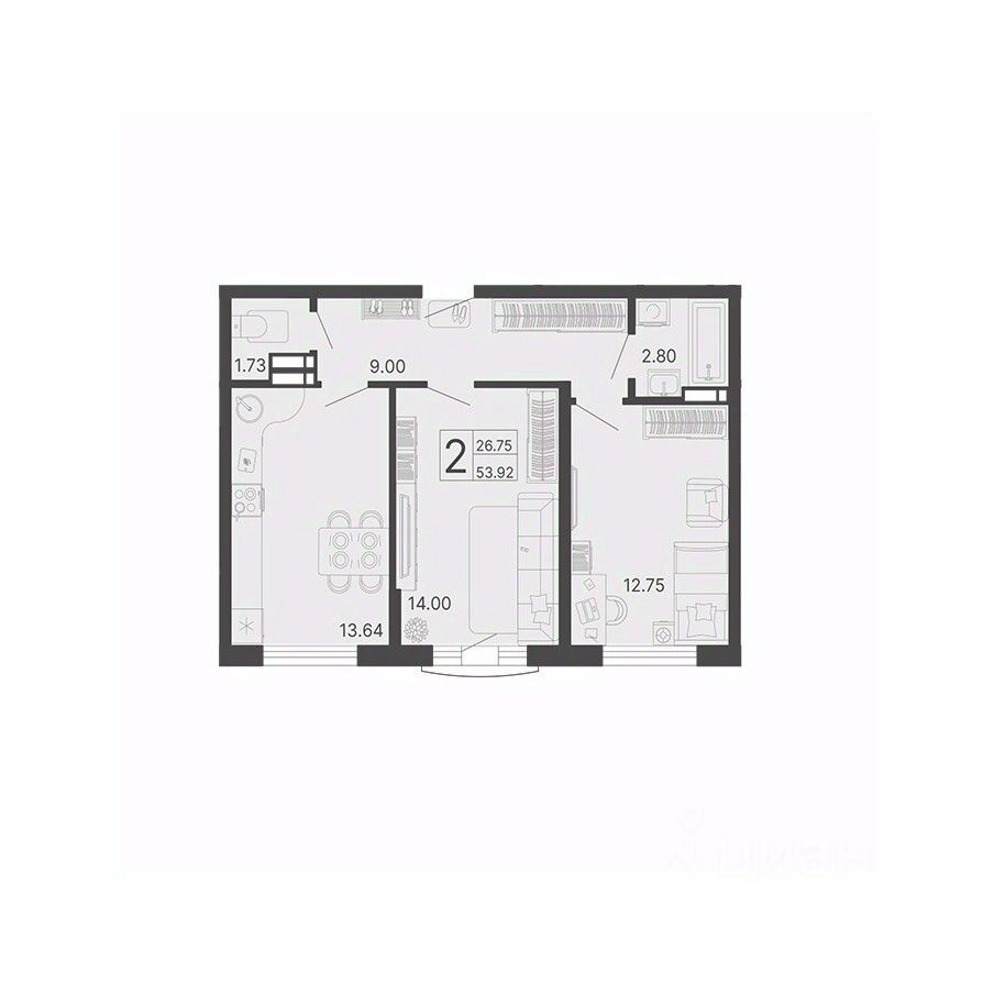 Общая площадь53,92 м²