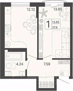 Общая площадь37,6 м²