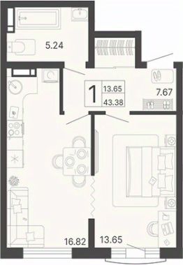 Общая площадь43,38 м²