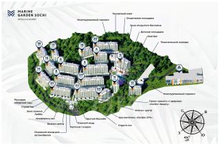 "Marine Garden Sochi" Hotels & Resort - крупнейший курортный комплекс, расположенный между живописным зеленым массивом и панорамным морским простором района Хоста города Сочи в уединённой парковой зоне площадью 8 га с собственной культурной и развлекательной инфраструктурой.
