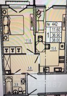 Общая площадь 38 м², свободная планировка (проект планировки от застройщика в комплекте).