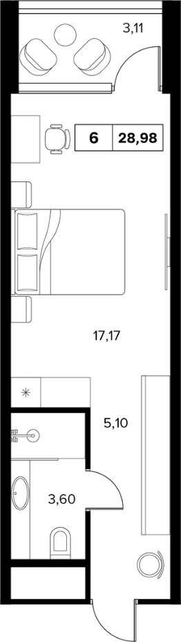 Продаются 1-комнатные апартаменты в строящемся доме (Д.37 А Корпус А), срок сдачи: III-кв. 2028, общей площадью 28.98 кв.м., на 3 этаже.