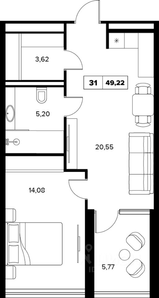 Продаются 2-комнатные апартаменты в строящемся доме (Д.37 А Корпус Б), срок сдачи: III-кв. 2028, общей площадью 49.22 кв.м., на 7 этаже.