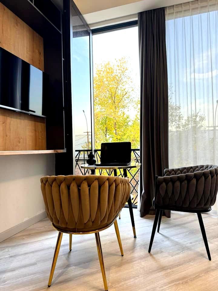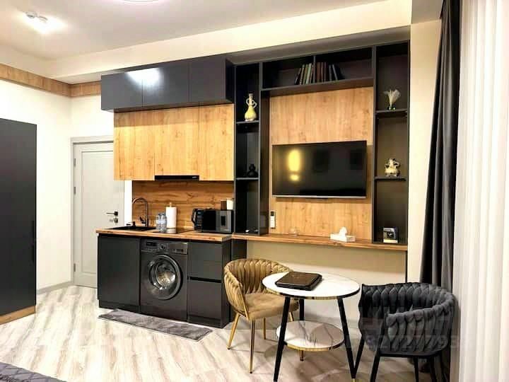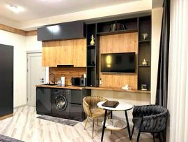 Красивая видовая квартира, с хорошим дизайнерским ремонтом! С хорошей инфраструктурой. в пешей доступности магазины, кафе, рестораны, детская площадка спортивная площадка. До моря 5 мин пешком. Ремонт делали для себя. В квартире есть мебель и техника, это всё остаётся.