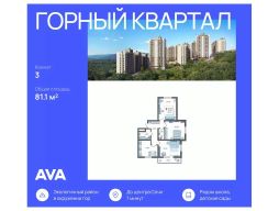 В продаже 3-комнатная квартира площадью 81.1, расположенная Литер 4 жилого комплекса комфорт+ класса "Горный квартал". Комплекс от девелопера AVA находится в Сочи, Хостинского района, в 15 минутах езды от центра города.