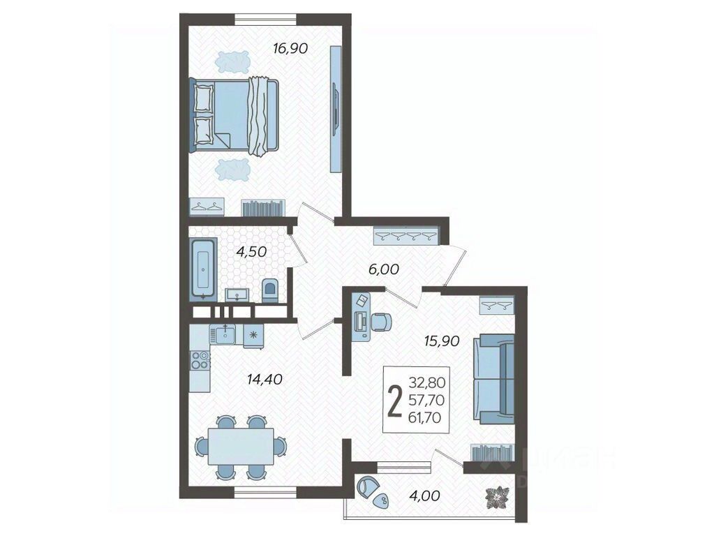 Общая площадь61,7 м²