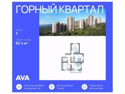 В продаже 3-комнатная квартира площадью 82.4, расположенная Литер 1 жилого комплекса комфорт+ класса "Горный квартал". Комплекс от девелопера AVA находится в Сочи, Хостинского района, в 15 минутах езды от центра города. Отличная транспортная доступность: Остановка маршрутных такси - 5 минут пешком, Барановский виадук - 10 минут на авто, Министерские озера - 2 минуты пешком, Гимназии, детские сады, фитнес-центры, супермаркеты, кинотеатр - 5-10 минут на авто, Ж/Д и автовокзал - 15-20 минут на авто, Адлер - 30 минут на авто, Аэропорт - 45 минут на авто. Аккуратный облик домов Жилой комплекс состоит из пяти корпусов высотой от 10 до 16 этажей. Сдержанные фасады в бежево-серых оттенках выглядят аккуратно и гармонируют с природным окружением, а открытые балконы добавляют облику домов легкости. Контейнеры под кондиционеры встроены в фасады и практически незаметны, благодаря чему дома сохраняют опрятный внешний вид. Комплекс расположен на склоне горы, поэтому из окон квартир на верхних этажах открываются отличные панорамные виды на лес, озеро и город: чем выше этаж, тем выразительнее пейзаж. Двор, где есть место для всех На внутренней территории комплекса всем будет приятно и интересно проводить время в любой сезон. Здесь есть беседки и гамаки под теневыми навесами, что особенно удобно для отдыха в жаркие или дождливые дни. Для активных жителей предусмотрены спортивные площадки и уличные тренажеры, для детей - игровые площадки из натуральных материалов, а для семей и компаний - зона барбекю. Особое преимущество - кинотеатр под открытым небом: формат редкий для жилых комплексов и особенно ценный для совместного семейного досуга прямо рядом с домом. Во всем дворе - ландшафтное озеленение: высажены разнообразные деревья и кустарники, южные цветы и газоны. Природное окружение и идеальная экология Локация особенно понравится тем, кто любит природу и ведет активный образ жизни. Всего в 2 минутах ходьбы находится Нижнее Министерское озеро - отличное место для прогулок и отдыха. Поблизости расположены природные достопримечательности южного побережья, включая Черепашье озеро и дольмены, куда интересно ходить в походы или выезжать на выходные. До общественных и санаторных пляжей можно добраться за 20 минут на автомобиле. Благодаря хвойному лесу и мягкому морскому бризу здесь всегда чистый воздух, а ночами видно звездное небо, что подчеркивает горный характер места и создает редкое ощущение тишины и уюта для Сочи. Дополнительные преимущества Видовые квартиры с окнами на три стороны света и семейные форматы с тремя спальнями, двумя ванными и отдельной кухней; Наземный паркинг для жителей и гостей на 815 машиномест, На первых этажах домов работают магазины, рестораны и салоны красоты, к которым можно спуститься на лифте, Комфортно не только отдыхать, но и полноценно жить всей семьей: гимназии в 10 минутах езды, удобная дорогая до города, магазины и сервисы поблизости.