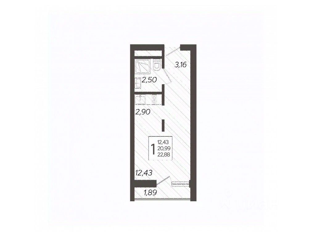 В продаже студия, площадью 22.88, расположенная Литер 10 жилого комплекса бизнес-класса "Кислород". Комплекс от девелопера AVA находится в Сочи, на северном склоне горы Бытха, в 7 минутах езды от центра города.