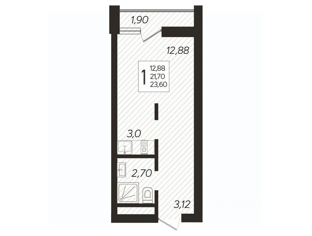 В продаже студия, площадью 23.6, расположенная Литер 1 жилого комплекса бизнес-класса "Кислород". Комплекс от девелопера AVA находится в Сочи, на северном склоне горы Бытха, в 7 минутах езды от центра города.